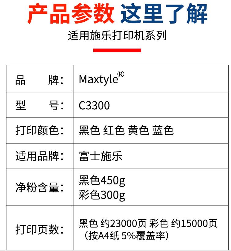 Maxtyle富士施樂Xerox C3300 C3360 C2250 C7425 C7428 C7435碳粉彩色復印機墨粉打印機粉盒通用易加粉硒鼓粉